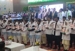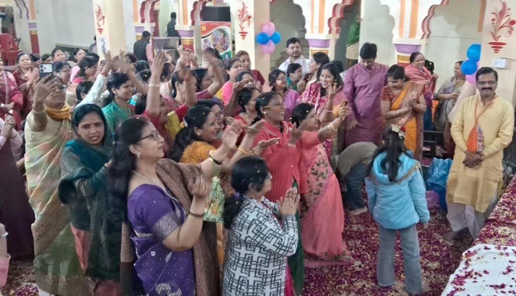 आजमगढ़। एक शाम राधा रानी के नाम, भक्ति और प्रेम की बही अविरल धारा, बरसाने की लाडली ने भजनों का ऐसा चलाया बाण की जमकर झूमे भक्त, खेली फूलों की होली। गौरतलब है कि श्री लाला जगरनाथ प्रसाद मुकुंदलाल अग्रवाल चैरिटेबुल न्यास के तत्वधान में शहर के चौक स्थित श्री बिहारी जी मंदिर में मंत्री गोपाल दास अग्रवाल के नेतृत्व में शनिवार की शाम राधा रानी के नाम करते हुए भजन संध्या एवं फूलों की होली का भव्य आयोजन हुआ। जिसमें बरसाने से आई कथावाचक लाडली जी ने राधा रानी के एक से बढ़कर एक मधुर भजनों की ऐसी प्रस्तुति दी कि श्रोतागण झूमने पर विवश हो उठे, इसके बाद भक्तों ने जमकर ऐसी फूलों की होली खेली की पूरा प्रांगण गुलाब की खुशबू से सुगंधित हो उठा। आरती प्रसाद वितरण के साथ कार्यक्रम सम्पन्न हुआ।