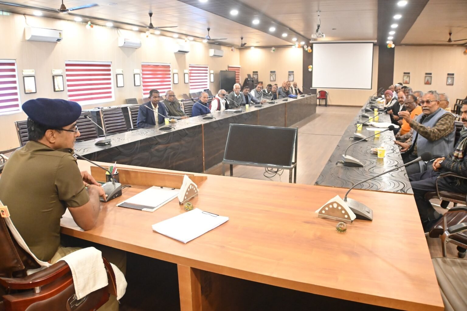 आजमगढ़। वरिष्ठ पुलिस अधीक्षक डॉ. अनिल कुमार द्वारा पुलिस लाइन सभागार, आज़मगढ़ में पुलिस विभाग के पेंशनरों के साथ बैठक आयोजित की गई। इस बैठक का उद्देश्य पेंशनरों की विभिन्न समस्याओं को सुनना और उनके त्वरित समाधान हेतु प्रभावी कदम उठाना था।बैठक के दौरान पेंशनरों द्वारा पेंशन संबंधी समस्याएं, भूमि/जमीन से जुड़ी समस्याएं, तथा अन्य व्यक्तिगत एवं प्रशासनिक मुद्दों को रखा गया। वरिष्ठ पुलिस अधीक्षक ने सभी समस्याओं को गंभीरता से सुनते हुए संबंधित अधिकारियों को तत्काल आवश्यक दिशा-निर्देश प्रदान किए। उन्होंने यह भी आश्वासन दिया कि सभी मामलों का शीघ्र एवं पारदर्शी निस्तारण किया जा रहा है।वरिष्ठ पुलिस अधीक्षक ने पेंशनरों के कल्याण को विभाग की सर्वोच्च प्राथमिकता बताते हुए कहा कि पुलिस विभाग के सेवानिवृत्त कर्मियों का अनुभव और योगदान अमूल्य है, और उनकी समस्याओं का समाधान करना पुलिस प्रशासन की नैतिक जिम्मेदारी है।