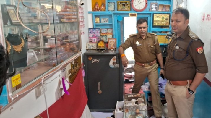 आजमगढ़। चोरों का ज्वैलरी सहित दो दुकानों पर धावा, नकदी सहित 9 लाख के माल पर किया हाथ साफ।बीती रात चोर सिधारी घाट स्थित सुनील वर्मा की श्री दुर्गाजी आभूषण कला केंद्र का ताला तोड़कर दुकान को अंदर से पूरी तरह खंगाल डाला। चोरो ने लगे हाथ ही बगल की ओम प्रकाश यादव की इलेक्ट्रिक रिपेयरिंग की दुकान के गल्ले का भी ताला तोड़ दिया। सूचना पर सिधारी थाने की पुलिस मौके पर पहुंच गई। वही घटनास्थल निरीक्षण करने पहुंचे सीओ सिटी शुभम तोंदी ने बताया कि पीआरवी के माध्यम से इस घटना की सूचना मिली है, फिलहाल पुलिस मामले की जांच पड़ताल में जुटी हुई है।दुकानदार सुनील ने बताया कि सुबह मकान मालिक की सूचना पर घटना की जानकारी हुई। जब दुकान के अंदर झांककर देखा तो चोर नदी किनारे से लगे पिछले दरवाजे का ताला तोड़कर अंदर रखे 15 हजार नकदी, 30 ग्राम सोने और ढाई किलो चांदी लगभग 8 लाख के आभूषण उठा ले गए। वही ओम प्रकाश यादव ने बताया कि चोरों ने सुनील के दुकान के अंदर से ही बीच का दरवाजा तोड़कर उनके भी दुकान में रखे 60 हजार रुपए पर हाथ साफ कर दिया।