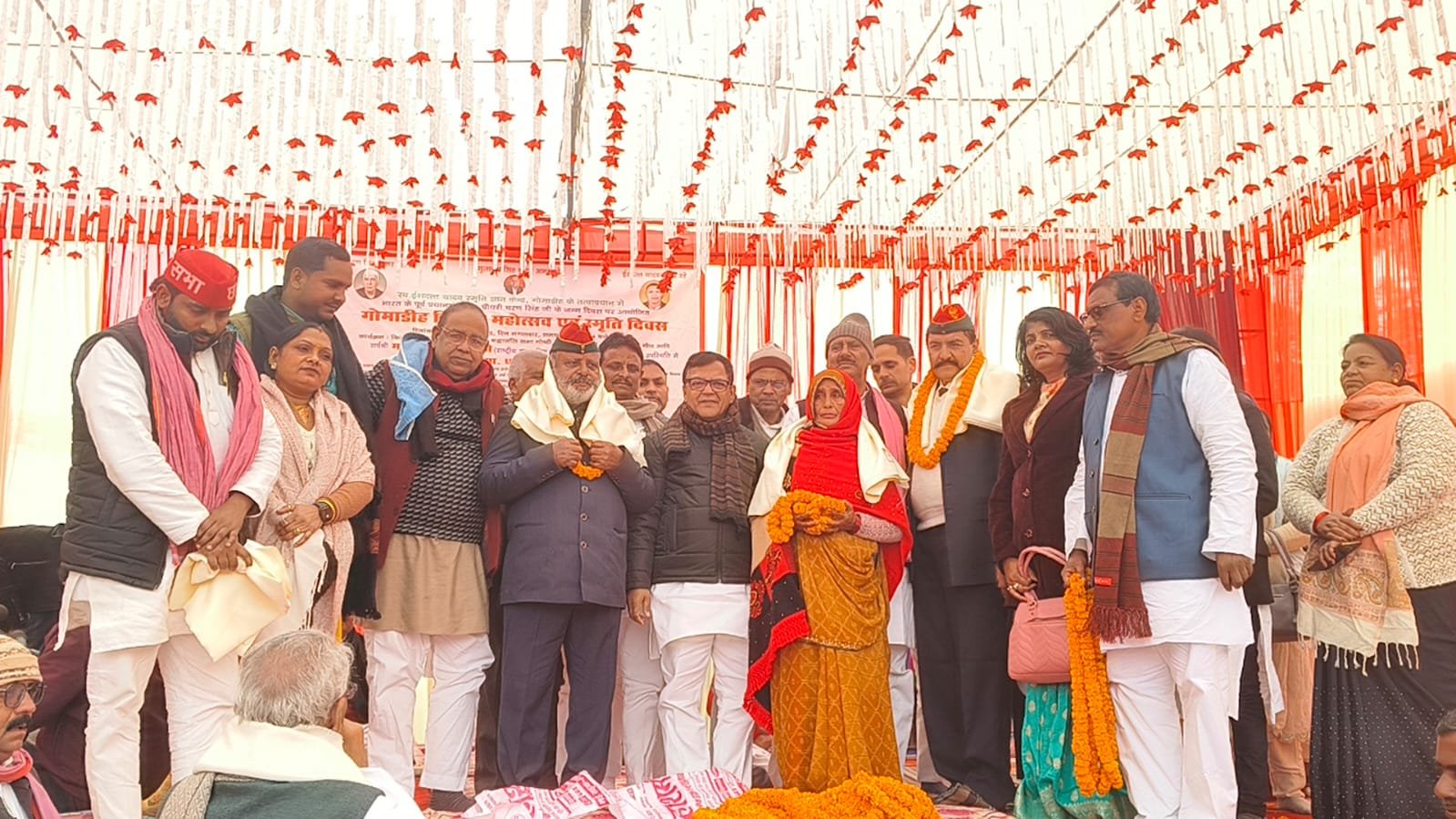इसी क्रम में गोमाडीह लालगंज आजमगढ़ में पूर्व प्रधान मंत्री भारत रत्न चौधरी चरण सिंह जी की 123 वीं जयंती में धूमधाम से मनाई गई।उनके चित्र पर लोगों ने पुष्प अर्पित कर उनको श्रद्धांजलि अर्पित किया। आयोजित कार्यक्रम को संबोधित करते हुए लालगंज सांसद दरोगा प्रसाद सरोज ने कहा कि चौधरी साहब ने जमीदारी समाप्त किया, चकबंदी चलाकर गरीबों के लिए आबादी की व्यवस्था किया नहीं तो जमीदार खेतों में निकलने नहीं देते थे। जिलाध्यक्ष हवलदार यादव ने कहा कि चौधरी साहब किसानों के लिए तमाम ऐतिहासिक कार्य किया जिससे लोगों को हक व अधिकार मिला आज भाजपा सरकार में किसानों की उपेक्षा हो रही है खेती घाटे का सौदा हो गई है। आंदोलन करने पर किसानों पर लाठियां चार्ज हो रही हैं उनके विचार आज भी प्रासंगिक हैं। अवकाश प्राप्त सैनिकों को अंग वस्त्र देकर सम्मानित किया गया और उनकी स्मृति में गरीबों को कंबल वितरण किया गया। भोजपुरी गायकों को आयोजक हरिप्रसाद दुबे ने सम्मानित किया। कार्यक्रम की अध्यक्षता समाजवादी पार्टी के जिलाध्यक्ष हवलदार यादव ने किया संचालन जिला महासचिव हरी प्रसाद दुबे ने किया। कार्यक्रम के आयोजक हरिप्रसाद दुबे ने सब के प्रति आभार प्रकट किया। कार्यक्रम में पूर्व सांसद नंदकिशोर यादव, पूर्व एमएलसी कमला प्रसाद यादव, जिला पंचायत अध्यक्ष विजय यादव, अजीत कुमार राव, शाहिद प्रधान, लईक अहमद, राज नारायन यादव, डॉ हरिराम सिंह यादव,विनीत राय, ओम प्रकाश राय, शरद यादव, अशोक चौहान, राम बदन कनौजिया, राजेश यादव, राजेश सरोज, इं.लालचंद यादव, कमलेश यादव गायक, गौरव यादव, द्रौपदी पांडेय,बबीता चौहान, इं. अभिषेक यादव,गुड्डी देवी आदि समाजवादी पार्टी के नेता पदाधिकारी व कार्यकर्ता उपस्थित रहे।