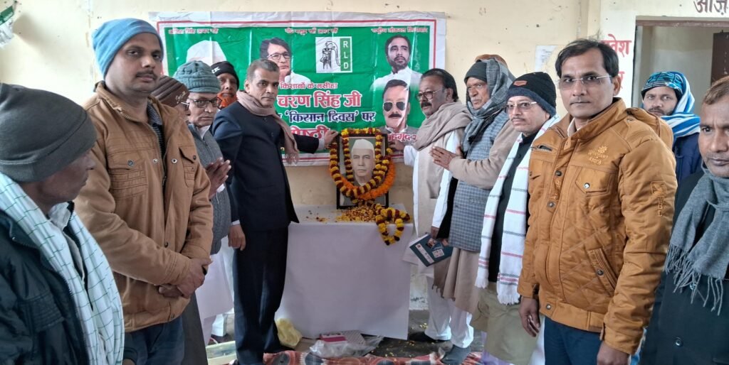 आजमगढ़। किसानों के मसीहा रहे पूर्व प्रधानमंत्री चौधरी चरण सिंह की जयंती पर राष्ट्रीय लोकदल जिलाअध्यक्ष महमूद खां के नेतृत्व में शहर के कलेक्ट्रेक्ट स्थित रिक्शा स्टैंड पर गोष्ठी आयोजित की गई। गोष्ठी में बतौर अतिथि पहुंचे प्रदेश उपाध्यक्ष वसीम हैदर व अन्य पदाधिकारियों कार्यकर्ताओं ने चौधरी साहब के चित्र पर माल्यार्पण कर श्रद्धा सुमन अर्पित किया। इस दौरान प्रभावित होकर अकमल आजमी ने पार्टी की सदस्यता लेते ही जिला उपाध्यक्ष की जिम्मेदारी संभाली। गोष्ठी को संबोधित करते हुए प्रदेश उपाध्यक्ष ने कहा कि चौधरी साहब एक किसान हितैषी थे। उनके शासन काल में किसान को कभी भी खाद या पानी की किल्लत नही हुई, उन्होने किसानों को उनका मालिकाना हक दिलाया। प्रदेश सचिव धीरेन्द्र प्रताप सिंह ने कहा कि चौधरी साहब कहते थे कि देश की खुशहाली का रास्ता खेत और खलिहानों से होकर गुजरता है। इस दौरान प्रदेश कार्य सचिव सदस्य पतिराम यादव, मण्डल अध्यक्ष राममिलन चौहान, कलाम, मोतीन अहमद, मो अमजद, मो नौशाद, लाडिल उर्फ फिरोज, टीएन शास्त्री, मो साबिर, सन्तोष कुमार, मो शाहिद, मो अफजल, चन्द्रमोहन सिह आदि उपस्थित रहे।
