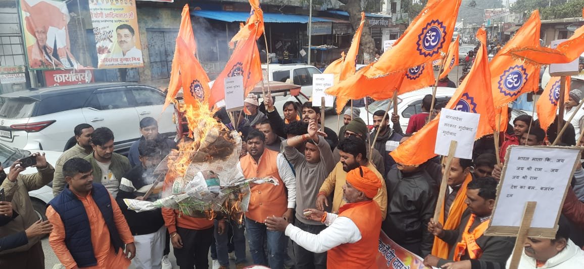 आजमगढ़। हिंदू संगठनों ने बांग्लादेश में दीपू दास की हत्या एवं अन्य हिंदुओं पर हो रहे अत्याचारों के विरोध में कलेक्ट्रेट चौराहे पर इस्लामी जिहाद के विरोध में नारा लगाते हुए पुतला दहन किया गया।विश्व हिंदू परिषद जिला अध्यक्ष अमित गुप्ता ने कहा कि बांग्लादेश में सत्ता परिवर्तन के बाद इस्लामी जिहादी गतिविधियां निरंतर बढ़ती जा रहीं हैं और उनके निशाने पर हिंदूओं के मंदिर, व्यावसायिक केंद्र, महिलाएं, संपत्ति, शासकीय कर्मचारी, पत्रकार ही रहते हैं। हिंदू प्रताड़ना की वीभत्स घटनाएं प्रति सप्ताह होती रहती हैं। परंतु गत सप्ताह मेमनसिंह जिले के भालुका नामक स्थान पर ऐसी घटना हुई है जिसने पूरी मानवता को लज्जित किया है।जिला कार्याध्यक्ष अजीत सिंह ने कहा कि एक सामान्य हिंदू श्रमिक दीपू दास पर ईशनिंदा का झूठा आरोप लगाया गया। एक अनौपचारिक बातचीत में दीपू दास ने ईश्वर के एक होने और उसके विभिन्न नाम होने की बात कही, जिसमें कुरान, इस्लाम या अल्लाह का कोई संदर्भ नहीं था। इसे मनमाने ढंग से ईशनिंदा का रूप देकर उसे प्रताड़ित किया गया। जिहादी तत्व यहीं नहीं रुके और एक बड़ी भीड़ ने पीट पीट कर उसकी नृशंस हत्या कर दी। आतंक फैलाने के लक्ष्य से दीपू की मृत देह को पेड़ से लटका कर जलाया और इन सब हिंसक बर्बर घटनाओं के विडियो सोशल मीडिया में तत्काल प्रसारित किए गए। यह सारा घटनाक्रम पुलिस प्रशासन की आंखों के सामने हुआ और उन्होंने इसे रोकने की कोई चेष्टा नहीं की।बांग्लादेश का पूरा प्रशासन और समाज हिंसक और बर्बर इस्लामी जिहादी तत्वों के हिंदू विरोधी नंगे नाच पर मौन साधे हुए है और निष्क्रियता से उन्हें प्रोत्साहित ही कर रहे हैं। अल्पसंख्यकों के मानवीय अधिकारों का ऐसा खुला हनन किसी भी सभ्य समाज में मानवता के विरुद्ध गंभीर अपराध है।यह निर्णय किया गया है कि ऐसी बर्बर जिहादी हिंसा और प्रशासनिक निष्क्रियता की निन्दा करने, हिंदू विरोधी हिंसा पर रोक लगाने, इनके अपराधियों पर कड़ी कार्रवाई कर उन्हें सजा देने और बांग्लादेश में अल्पसंख्यकों के लिए भय और शोषणमुक्त वातावरण बने। विश्व हिंदू परिषद बजरंग दल एवं उसके मातृ शक्ति की इकाई दुर्गा वाहिनी के साथ ही साथ समस्त हिंदू समाज के द्वारा यह कार्यक्रम किया गया, इसमें मुख्य रूप से हिंदू परिषद जिला अध्यक्ष अमित गुप्ता संयुक्त विभाग संगठन मंत्री आर्यमगढ़ विभाग एवं बलिया विभाग दिव्यांशु, विभाग मंत्री गोपाल दूबे, जिला कार्याध्यक्ष अजीत प्रताप सिंह, जिला उपाध्यक्ष शैलेंद्र सिंह, जिला उपाध्यक्षा सोमिता श्रीवास्तव, जिला संयोजिका दुर्गा वाहिनी इंदु निषाद, विभाग सह मंत्री मनोज शाही, विभाग सह मंत्री विनोद सोनकर, जिला मंत्री अभिषेक सिंह उधम, जिला सह मंत्री विमल मौ