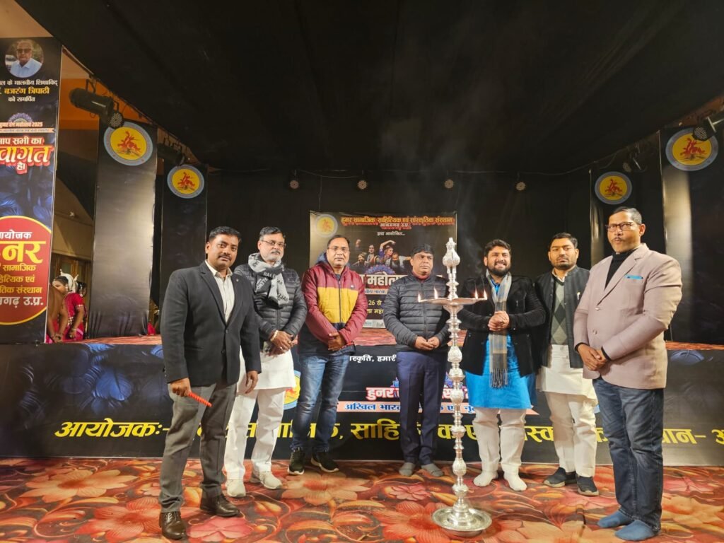 आजमगढ़। रंगमंच एवं ललित कलाओं के क्षेत्र में समर्पित हुनर सामाजिक, साहित्यिक और सांस्कृतिक संस्था द्वारा पिछले 24 वर्षों से लगातार आयोजित हो रहे हुनर रंग महोत्सव के दूसरे दिन शनिवार को उद्धघाटन माँ सरस्वती की प्रतिमा के सम्मुख दीप प्रज्ज्वलन कर पूर्व जिला अध्यक्ष लालगंज भारतीय जनता पार्टी सूरज प्रकाश श्रीवास्तव, वरिष्ठ व्यवसायी अनूप कुमार अग्रवाल, अशोक कुमार अग्रवाल ज्योतिषाचार्य सत्यम गुरु । नें किया।यहआयोजन अग्रसेन महिला महाविद्यालय के प्रांगण मे चल रहा है. आए हुए सभी अथितियों का स्वागत स्वागताअध्यक्ष अभिषेक जायसवाल दीनू, संस्थान अध्यक्ष मनोज यादव ने किया। प्रथम सत्र मे आर. पी. पी. यस.डान्स ग्रुप उत्तराखंड द्वारा मनमोहन गढ़वाली समूह नृत्य की प्रस्तुति से पूरा हाल तालियों गुज उठा। द्वितीय सत्र मे प्रथम नाट्य प्रस्तुति ड्रामाटरजी आर्ट एंड कल्चर सोसायटी दिल्ली द्वारा ‘ताजमहल का टेंडर’ अजय शुक्ला द्वारा लिखित एक व्यंग्यात्मक हिंदी नाटक है, जो यह कल्पना करता है कि अगर मुग़ल बादशाह शाहजहाँ आज के दौर में ज़िंदा होते और सरकारी विभागों, टेंडरों और लालफीताशाही के बीच ताजमहल बनाने की कोशिश करते, तो क्या होता।जब शाहजहाँ प्रेम की याद में मुमताज़ महल के लिए यह स्मारक बनवाने के लिए पब्लिक वर्क्स डिपार्टमेंट (PWD) के पास जाते हैं, तो वे ख़ुद को कागज़ी कार्यवाही, टेंडर प्रक्रियाओं और भ्रष्ट तरीकों के जाल में उलझा हुआ पाते हैं। कुशल कारीगरों और समर्पण की जगह यह परियोजना सरकारी देरी, धन की कमी और लालची अधिकारियों में फँसकर रह जाती है।तेज़ धार वाले हास्य और चुटीले संवादों के माध्यम से यह नाटक आधुनिक व्यवस्था की अक्षमता, भ्रष्टाचार और प्रक्रियागत बेतुकीपन पर कटाक्ष करता है। जैसे-जैसे टेंडर प्रक्रिया लंबी खिंचती जाती है, शाहजहाँ का सपना बार-बार रुक जाता है और ताजमहल का भव्य ख़्वाब एक बेअंत सरकारी फ़ाइल में बदलकर रह जाता है।यह एक तीखा राजनीतिक और सामाजिक व्यंग्य है, जो इतिहास को आज की हकीक़तों से जोड़ते हुए दर्शकों को हँसाता भी है और हमारे प्रशासनिक ढाँचे की कमियों पर सोचने के लिए भी मजबूर करता है।